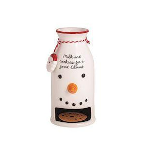 Hand-painted ceramic milk pitcher with cut-out well to hold cookie.