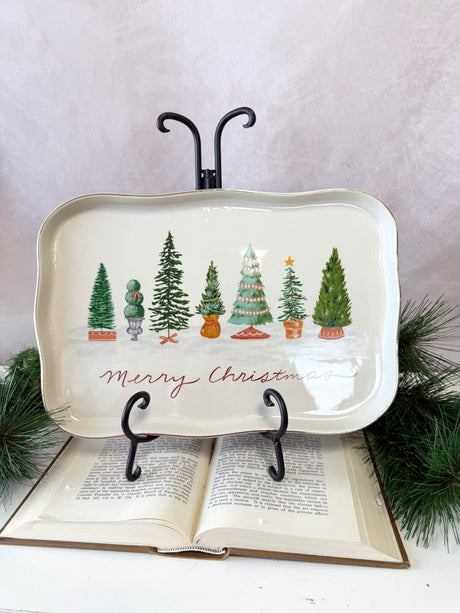 Merry Christmas Stoneware & Gold Scalloped Platter