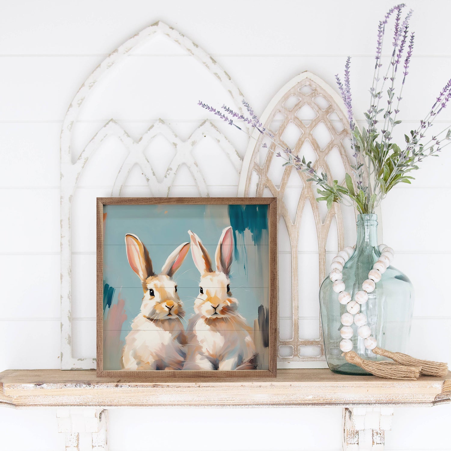 Bunny Pair Bunch Of Carrots Whitewash Wood Art