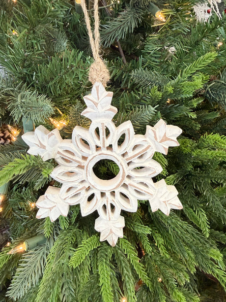 Carved Wood Snowflake Ornament s