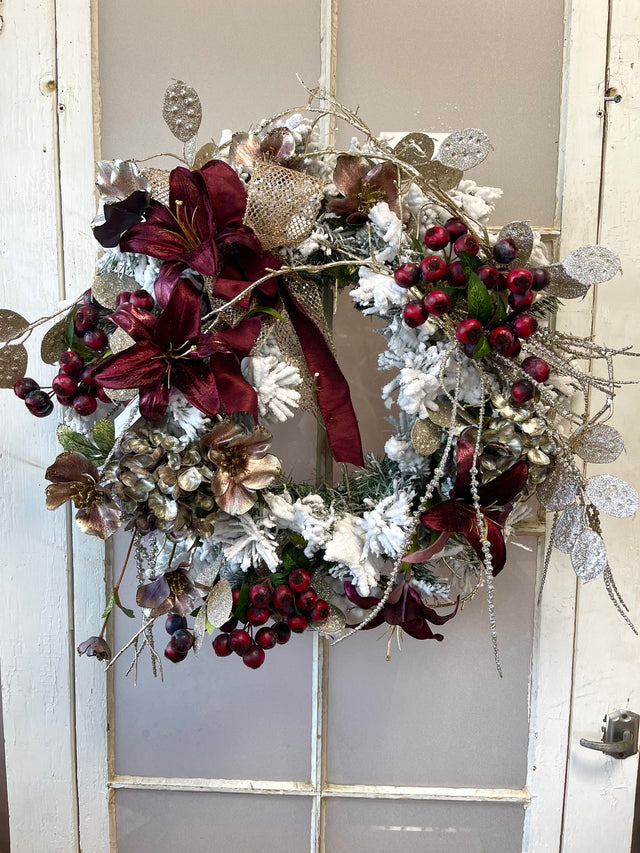 23" Snow Kissed Cherries Wreath is backordered and will ship as soon as it is back in stock.