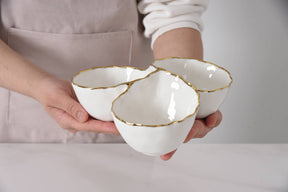 3 Section Server from our Portofino Collection. This server provides seamless options for presenting condiments, snacks, dips, or other accompaniments with ease. Made from premium white porcelain, each section is adorned with a delicate gold trim that exudes sophistication and charm. Designed for both beauty and functionality, this piece is a fabulous addition for entertaining or everyday use. Food safe, tarnish free, dishwasher safe, oven safe to 500°F/260°C.