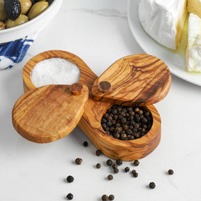 🧂 Add rustic charm and functionality to your kitchen with our Olive Wood Salt & Pepper Box. This handcrafted container features two compartments and a swivel lid—perfect for keeping salt and pepper (or your favorite spices) within easy reach.