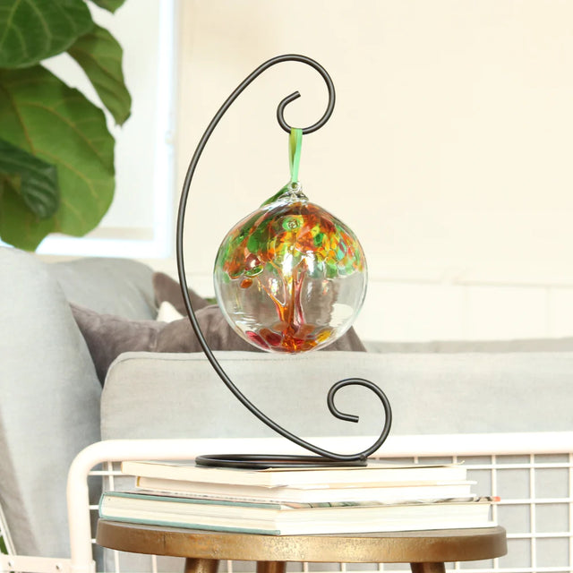 The Tree of Enchantment Collection is Kitras Art Glass’ signature creation. The glass “leaves” cascade across the top of this hanging orb and the “trunk” webbing is pulled through the interior from bottom to top.