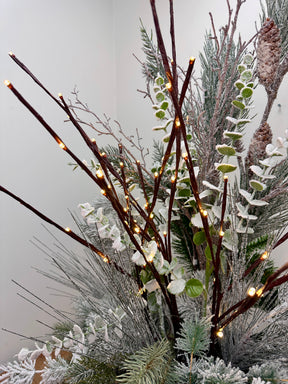 LED Twigs consist of three connected 32" stakes with wire wrapped stems. Each set of twigs has 60 lights. The smaller size makes Twig lights perfect for indoor or outdoor use in floral displays, trees, or staked into the ground. A 45" lead cord and 30" cord between each stake gives you extra length to work with when creating standalone displays.